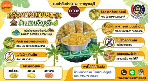 💕บ้านสวนอัญชุลี ต.ท่าเสา อ.ไทรโยค ชูผลิตภัณฑ์ “กล้วยหอมทองฉาบ” เกรดพรีเมียม แปรรูปจากกล้วยหอมทองแท้ 100% ในพื้นที่ มุ่งยกระดับสินค้าชุมชนตามมาตรฐาน OTOP นวัตวิถี เพื่อสร้างรายได้ที่ยั่งยืนให้แก่คนในท้องถิ่น